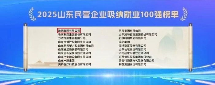 8月19日,2025山东民营企业百强系列榜单发布会盛大举行,玫德集团入选2025山东民营企业200强、2025山东民营企业吸纳就业100强。