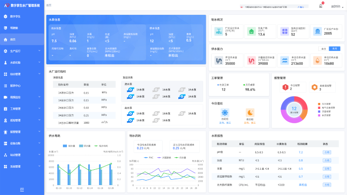 当前,传统净水厂在建设与运营中普遍面临以下难题:运行依赖人工协调,配套系统复杂;运维阶段药耗与电费支出居高不下;信息化系统分散割裂,数据难以贯通共享;远程调控能力不足。同时,由于缺乏智能预警机制与可视化监控手段,异常工况下多依赖人工被动响应,影响运行稳定性与出水水质。传统运营模式已难以适应现代化水厂高效、安全、低碳的发展需求,智能化升级成为必然选择。