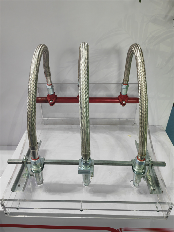 消防金属软管专业名称为消防洒水软管,主体材质不锈钢,包含不锈钢软管(即波纹管)和安装组件,用于自动喷淋系统中喷淋头与主管的连接,代替传统硬管。玫德艾瓦兹消防软管具备独特优势: