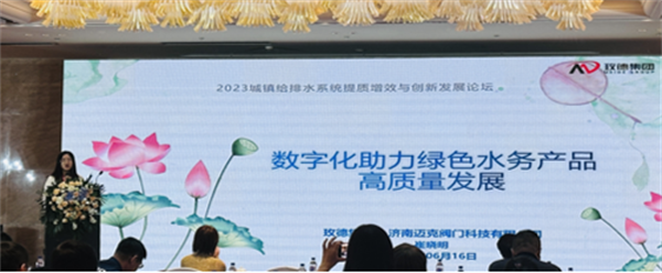迈克阀门研发中心主任崔晓明发表了《数字化助力绿色水务产品高质量发展》主题报告,针对双碳目标背景下,如何利用好数字化、智慧化,开发定制化解决方案、开发绿色低碳产品进行了介绍。她还向与会的专家和用户分享了玫德集团在水利水务领域控制、传输、连接、计量及智慧管理平台的一站式解决方案,包括从水源到用户、从给水到排水全工艺段。