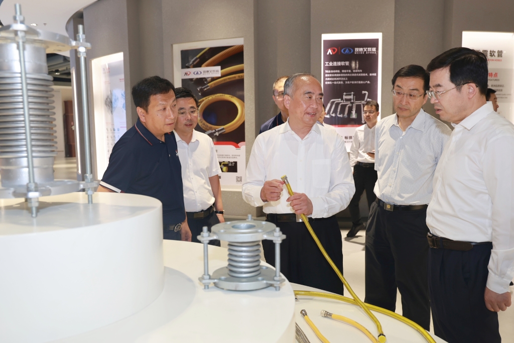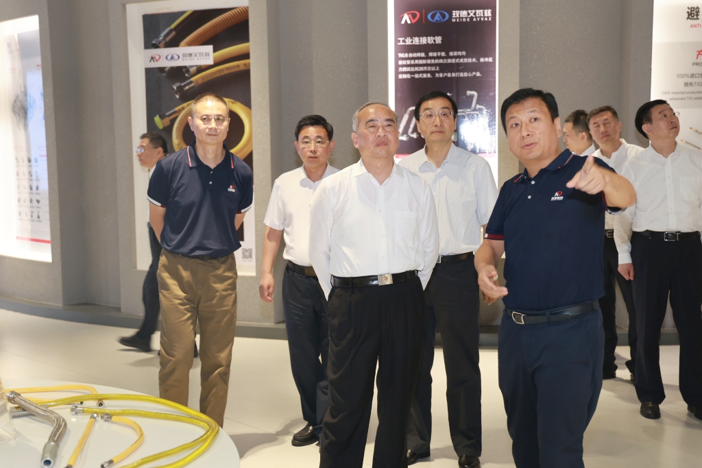 林武书记听取孔令磊的讲解介绍时,对玫德践行国内、国际双循环的布局以及在省内市场发展给与关注及指导,对玫德集团的不锈钢燃气软管、燃气宽边管件、不锈钢、碳钢卡压管件、TPEP螺旋钢管、大口径沟槽等创新产品的研发给予高度肯定,并了解了在省内市场的应用情况。林武书记指出,要坚持绿色低碳发展,以更大力度推动制造业高端化、智能化、绿色化发展。要继续加大科技研发投入,不断提升科技创新能力,持续增强企业核心竞争力。