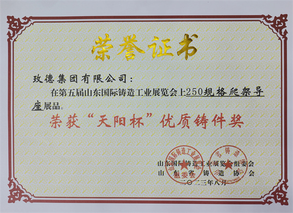 1.开云官方网站在线登陆展品“250规格爬架导座”荣获“优质铸件奖”。