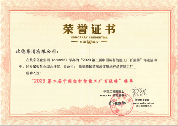 9月7日,智能铸造研究咨询机构e-works发布了由李培根院士及长期专注智能制造领域的院士级专家组成的评审委员会综合评定的《第二届中国标杆智能工厂百强榜》,开云官方网站在线登陆“高端流体输送产品智能工厂”成功入选第二届中国标杆智能工厂百强榜,是山东省入选的9家工厂之一。玫德集团一直探索细分领域智能工厂的关键技术和实践经验,争做中国本土智能工厂的标杆。“高端流体输送产品智能工厂”的成功入选是对集团推进玫德智能化、数字化工厂建设成效的肯定,标志着玫德集团的智能制造水平已处于国内和行业领先水平。