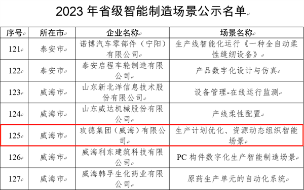 •玫德集团威海有限公司入选2022年威海市数字化车间