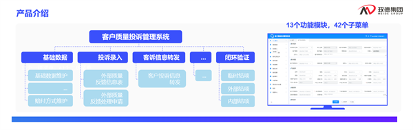 其主要分为客诉申请、客诉处理、客诉审批、客诉赔付、闭环验证、保险理赔和统计分析七大功能模块,通过在线系统对客诉处理的各个环节进行实时监控和管理。提高客诉处理的效率和质量,并确保客户的问题得到及时解决。
