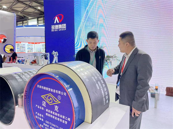 玫德集团带来了喷涂缠绕保温管、内外环氧防腐管、3PE防腐管、大口径钢管沟槽连接解决方案、不锈钢薄壁双卡压管件、碳钢卡压产品、风光互补远程控制蝶阀、分时分区压力管理阀、暗杆软密封闸阀、管道预制集成解决方案、抗震支吊架等产品,满足不同行业的需求,实现行业融合创新、寻求突破,促进钢管行业高质量发展。