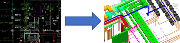 二维设计重点在平面图纸中表达设计意图和信息,BIM设计则重点在利用数值化模型中几何信息和非几何信息直观的看到系统的排布组成。
