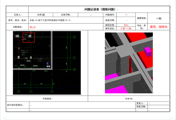 BIM设计人员在建模的过程中,通常会将在图纸上发现各种各样的问题,记录下来并会同设计单位解决,形成一图纸问题报告。本项目发现问题(含后面所述的碰撞等),经各相关单位共同协商已全部解决。这是BIM技术应用在提升设计质量落地实施、价值集中体现的关键点,同时也是业主们所关注的内容之一。