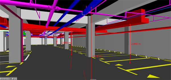 利用BIM模型,提前检查各区域的净空高度,提前发现问题,事前对净空进行优化,出具净空分析报告,减少后期的变更,降低工程成本,同时提高后期使用的舒适度。