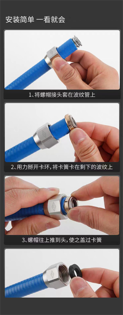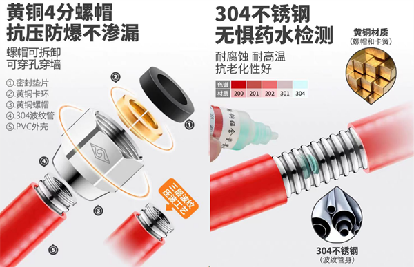 1.软管性能卓越:采用欧洲进口波纹管生产线,其具备业内领先的四次渐进式成型工艺,生产的波纹管具备超高的柔韧性和耐疲劳性;