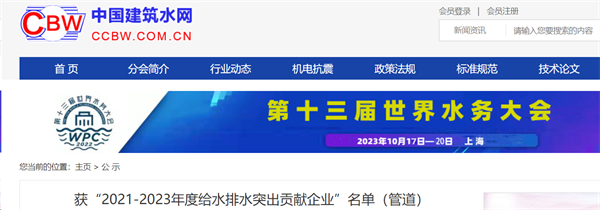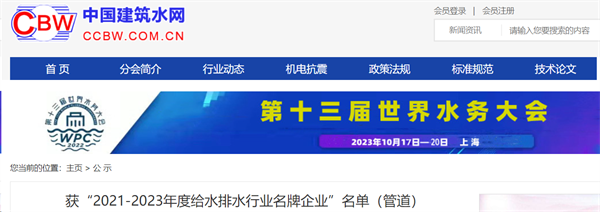 为鼓励中国建筑金属结构协会会员中给水排水行业企业在执行国家节能、环保和可持续发展的大政方针以及科技创新、技术进步、科学管理、产品研发、增强自主创新能力等方面取得突出成就,热心行业事业和公益事业,中国建筑金属结构协会管道委员会组织开展了“2021-2023 年度给水排水行业名牌、突出贡献企业”的评选工作。经过企业申报、评审委员会秘书处审验、协会官方网站征求意见、业内专家、知名学者和权威人士组成的评选委员会评选,最终济南迈科管道科技有限公司成功获得该两项荣誉。