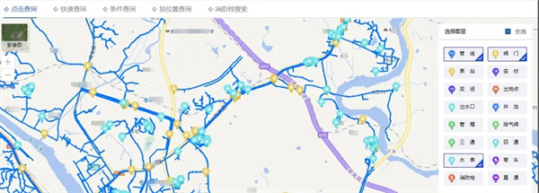用户通过系统可以实现资产数字化,摆脱依靠CAD图纸办公的落后模式,实现全流程无纸化管理。支持在线对阀门、管道、消火栓等资产进行图形化的编辑、查询、统计、分析,实现管网资产可视化管理。支持对管网资产进行年限管理,实现老化设备自动检测,到期自动提醒用户进行设备维修保养或更换。
